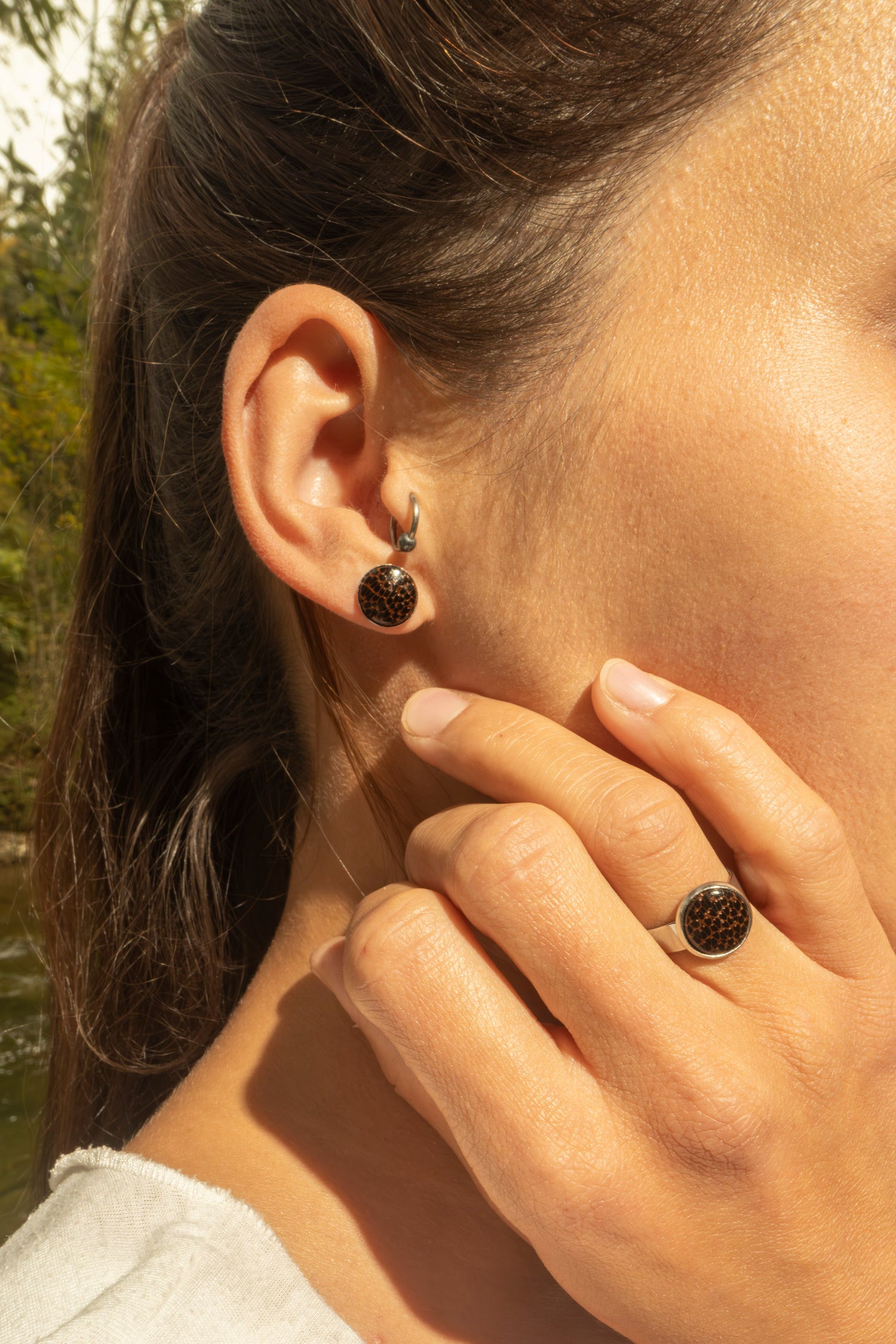 Dein Schmuckstück ist ein Unikat mit einem einzigartigen Charakter. Jedes Holzinlay in unseren Produkten ist ein Unikat, da wir aufgrund unserer einzigartigen Herstellungstechnik keine zwei identischen Stücke herstellen können. Unsere Fertigungsmethode erlaubt es uns nicht, im Voraus zu wissen, wie das Holz im Inneren aussieht. Genau das verleiht unseren Produkten ihr individuelles Design und ihre Einzigartigkeit.